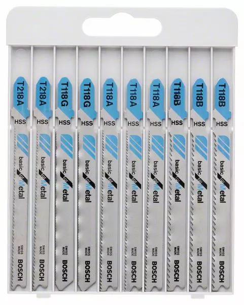 - Sada pilových listů Basic for Metal, kazeta (10 kusů) umožňuje řezání kovu.