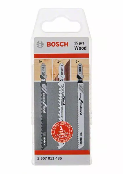 15dílná sada pilových plátků se stopkou T pro práci se dřevem BOSCH 2607011436