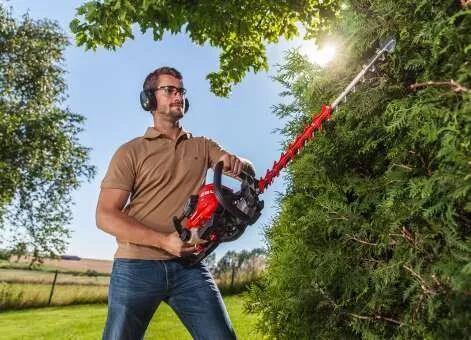 - Krásně ošetřené živé ploty, křoviny a keře na místech, kde není v blízkosti žádná zásuvka – s benzínovými zahradními nůžkami žádný problém díky 70 cm noži ze speciální tvrzené oceli a nádrži