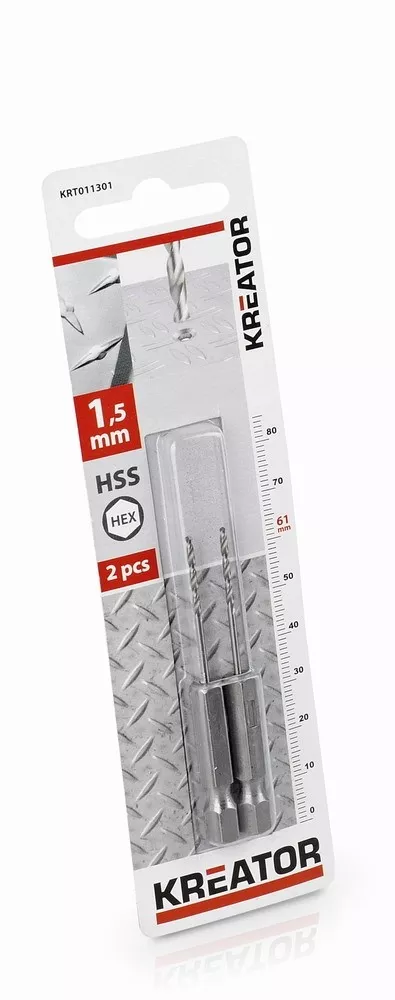 2 ks HSS Vrtáků do kovu HEX 1.5 x 61 mm Kreator KRT011301