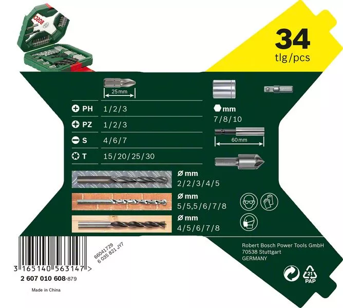- Výrobní text: 34dílná sada vrtáků a šroubovacích bitů X-Line Classic