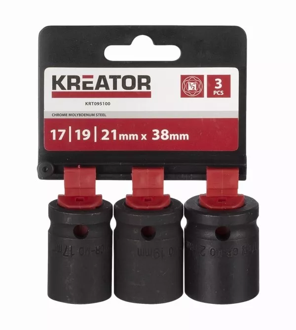 3ks nástrčných hlavic 17-19-21mm 1/2" Kreator KRT095100