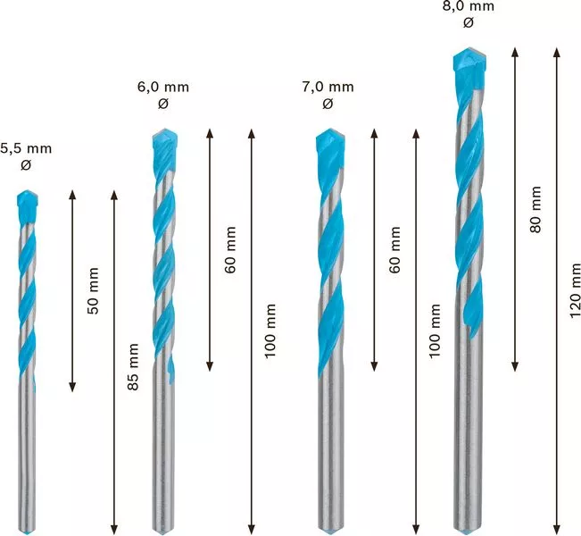 4dílná sada vrtáků EXPERT MultiConstruction CYL-9 5,5/6/7/8 mm BOSCH 2608900646