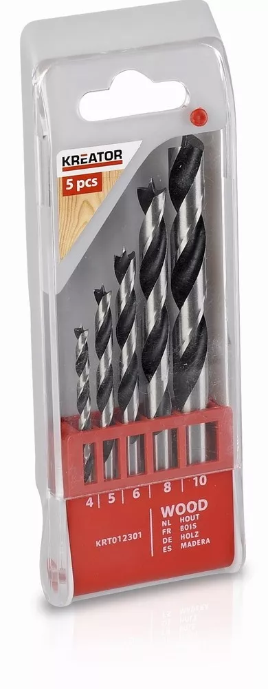 5 ks Vrtáků do dřeva 4-5-6-8-10 mm Kreator KRT012301