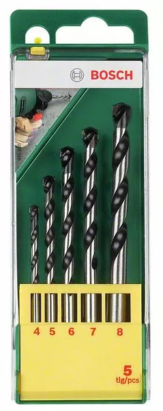 - Obsah: 5 vrtáků do betonu, Ø 4/5/6/7/8 mm