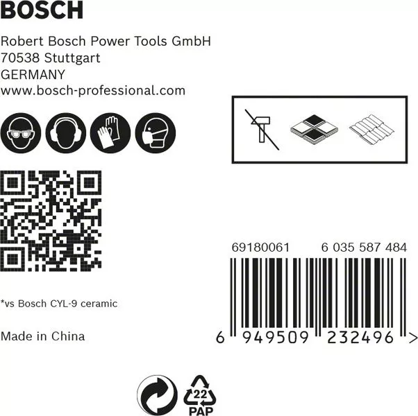 - Text s tvrzením o výkonnosti: Vydrží až 10× déle než vrták Bosch CYL-9 Ceramic