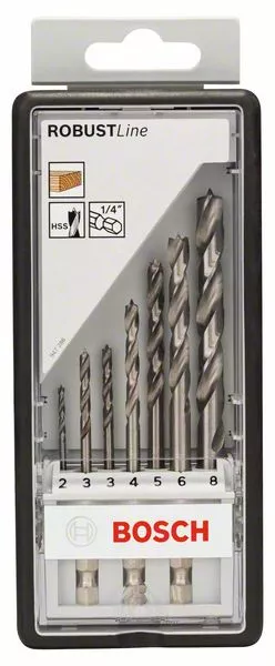 - Text o výrobku, příslušenství šedé: 7dílná sada spirálových vrtáků do dřeva Robust Line, 1/4"-šestihranná stopka