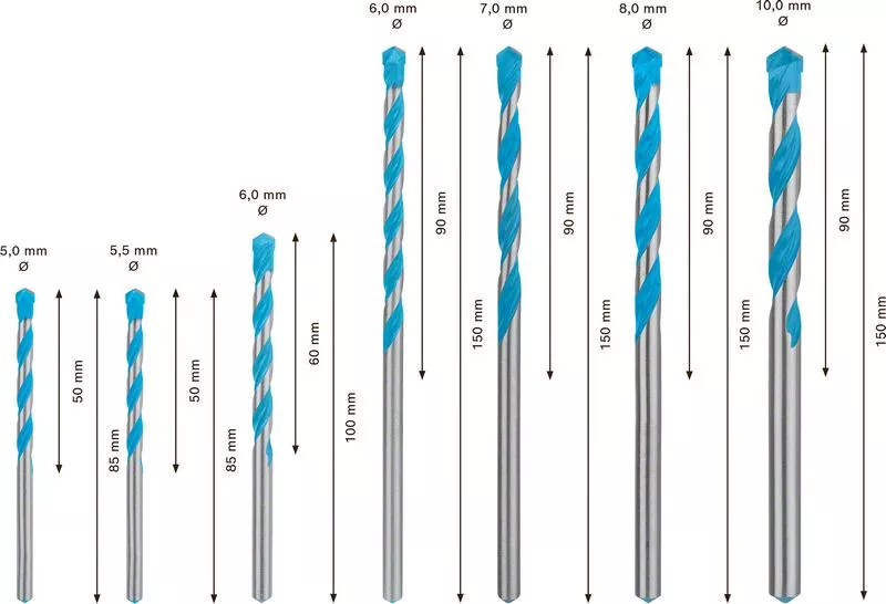 7dílná sada víceúčelových vrtáků EXPERT MultiConstruction CYL-9, 5/5,5/6/6/7/8/10 mm BOSCH 2608900648