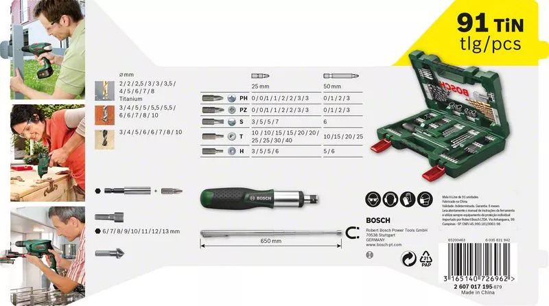 - Výrobní text: 91dílná sada vrtáků a bitů V-Line TiN s ráčnovým šroubovákem a teleskopickým magnetem