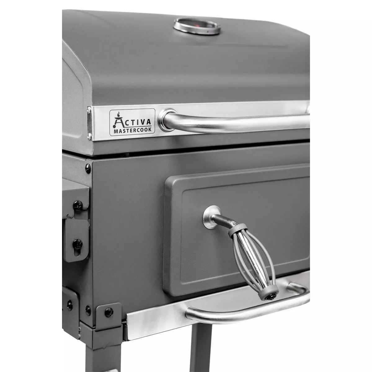 - Pokud jste příznivci grilování nad žhavými uhlíky, německá společnost Activa pro Vás přichystala krásný a kompaktní gril Angular Smart, vhodný pro pohoštění až osmi osob. Tento gril s klasickým designem se nejenom velmi jednoduše obsluhuje, ale je i skvěle vybavený a má řadu praktických doplňků. Kovové plochy grilu jsou opatřeny kvalitní vrstvou práškové barvy. Gril je vybaven litinovým děleným grilovacím roštem. Gril obsahuje i další vyklápěcí rošt, který je vhodný na nepřímé grilování masa či zeleniny anebo na ohřívání již ugrilovaných pokrmů. Regulace teploty je možná několika způsoby. Buď pomocí 2 ventilačních otvorů ve víku a 2 v těle grilu anebo pomocí výškově regulovatelné vany na uhlí. Rozžhavené uhlí tak pomocí otočné rukojeti podle potřeby lehce přibližujete nebo oddalujete od grilovaného pokrmu. Pro snadné přikládání i během grilování je tělo grilu opatřeno v čele velkými dvířky. Ve spodní části grilu je potom odnímatelný popelník. Pro sledování teploty je ve víku grilu umístěn teploměr. Z dalších praktických doplňků potom můžeme jmenovat dvě sklopné odkládací plochy, integrovaný otvírač na láhve, přední madlo vhodné třeba pro zavěšení grilovacích kleští a ještě jednu odkládací plochu ve spodní části grilu. Gril je díky čtyřem pevným nohám velmi stabilní a díky dvěma kolečkům se s ním i snadno manipuluje.