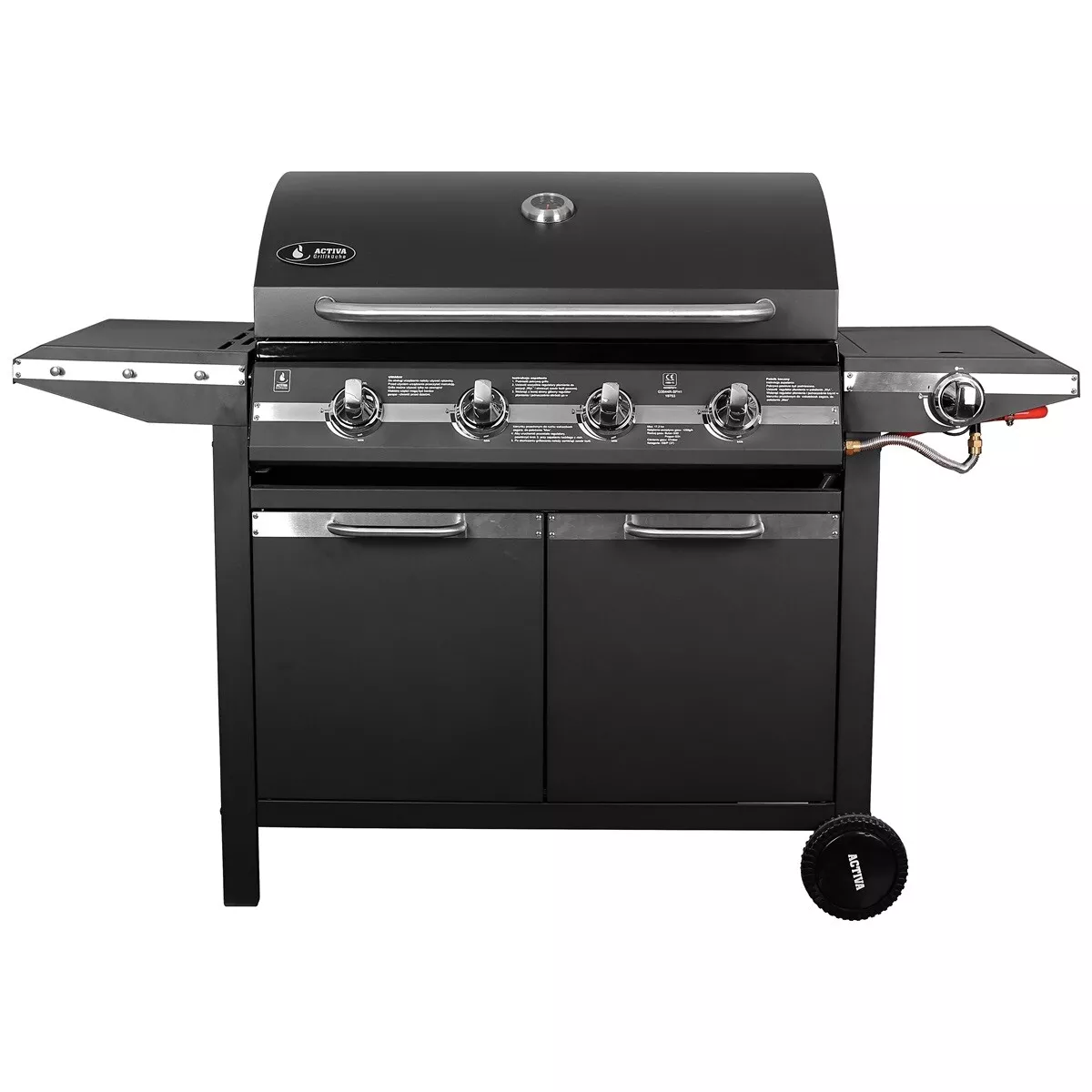 - Velký plynový gril Montana II od německé společnosti Activa se skvěle hodí pro chutnou přípravu jídel pro společnost až 14 lidí. Gril Montana je skvěle vybavený. Má čtyři moderní výkonné ploché hořáky s horním krytem, díky kterému je odkapávající tuk veden mimo plamen a odveden do speciální nádržky. Pokrm tak bude vždy zdravý bez zbytečných škodlivých prvků, které vznikají přepalováním tuku. Gril rovněž má praktický integrovaný boční vařič z odolné litiny vhodný na přípravu omáček, horkých nápojů nebo příloh. Hořáky se pohodlně zapalují pomocí piezo zapalování integrovaného v otočných knoflících. Gril je dále vybaven kvalitním smaltovaným dvoudílným litinovým grilovacím roštem kombinovaným s litinovou ohřívací deskou a dalším vyklápěcím roštem, který je vhodný na nepřímé grilování masa či zeleniny anebo na ohřívání již ugrilovaných pokrmů. Gril má háčky na pověšení nářadí, integrovaný otvírák, kvalitně lakované víko s velkým nerezovým madlem a zabudovaným teploměrem, dvě odkládací poličky na každé straně, integrované držáky na grilovací náčiní a praktický odkládací prostor pod grilem, který je přístupný dvířky zepředu. Pro snadný transport je vybaven kolečky. Na rozdíl od mnoha jiných grilů je již v základu vybaven vším potřebným pro připojení k plynové lahvi 5 nebo 10 kg. Gril je vybaven integrovaným držákem plynové bomby.