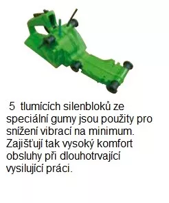 - 5 tlumicích silenbloků ze speciální gumy je použito pro snížení vibrací na minimum. Zajišťují tak vysoký komfort obsluhy při dlouhotrvající vysilující práci.
