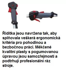 - Říditka jsou navržena tak, aby splňovala veškerá ergonomická kritéria pro pohodlnou a bezpečnou práci. Měkčené kvalitní plasty s pogumovanou úpravou jsou samozřejmostí a podtrhují profesionální ráz stroje.