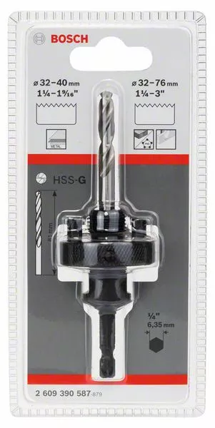 - Text k produktu, příslušenství, šedé: Velikost klíče 1/4" (6,35 mm), pro Ø 32 mm, 1 1/4" - Ø 76 mm, 3" (do kovu do Ø 40 mm)