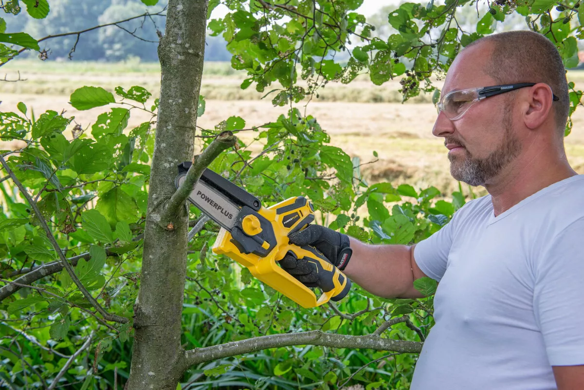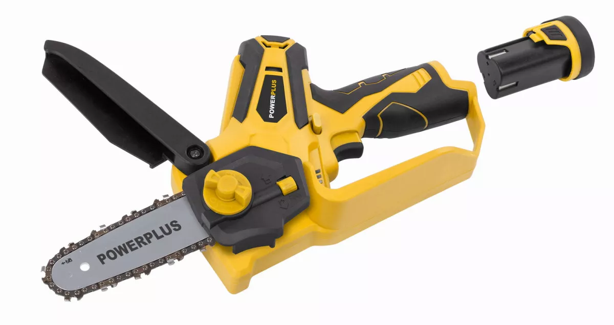 - Díky kompaktnímu designu můžete tuto prořezávací Aku 12V pilu POWXG1045 od PowerPlus ovládat pouze jednou rukou.