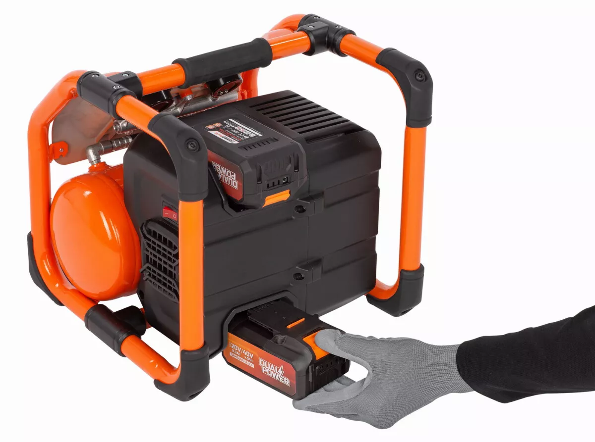 - Kompresor Dual Power je možné udržet v chodu déle, protože může být vybaven 2 bateriemi a nabízí tak flexibilitu, kterou potřebujete.