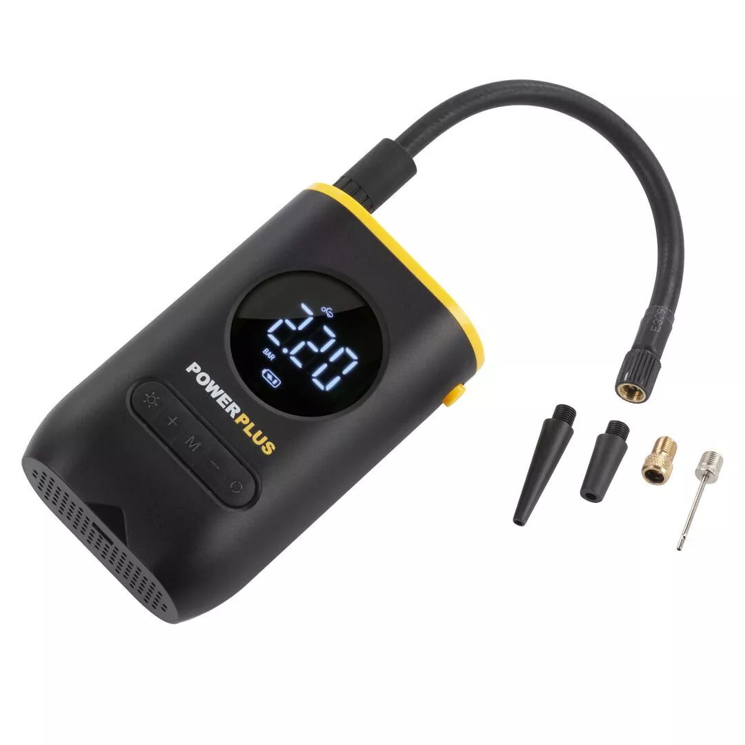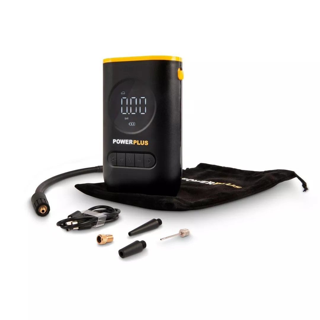 - Tento 8V akumulátorový kompresor POWX1710 od PowerPlus produkuje 16 litrů vzduchu za minutu při maximálním tlaku 10,3 bar nebo 149 PSI.