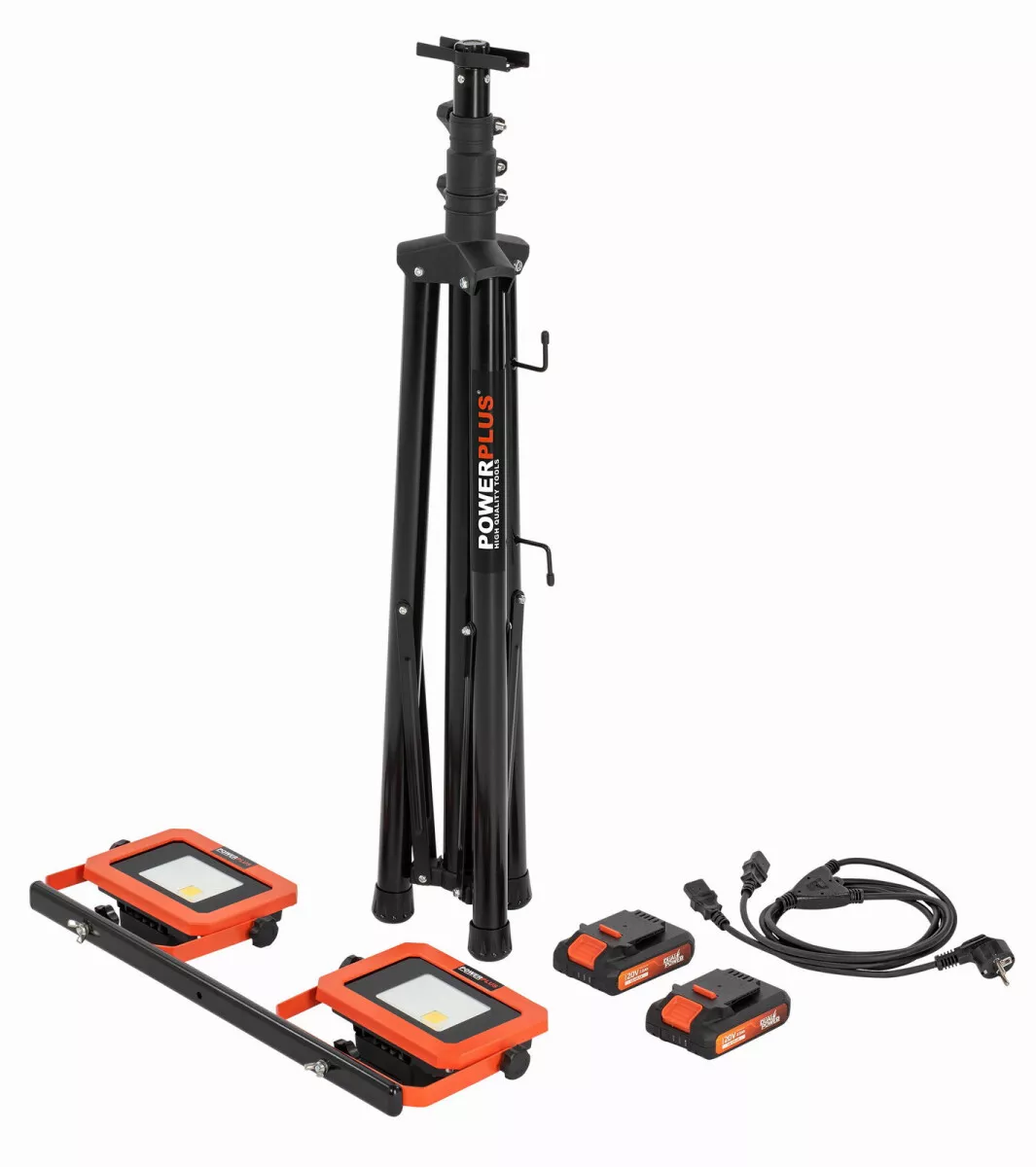 Aku LED svítilna na stativu 2x20V plus 220V 2x20W (bez AKU) Powerplus POWDP8035
