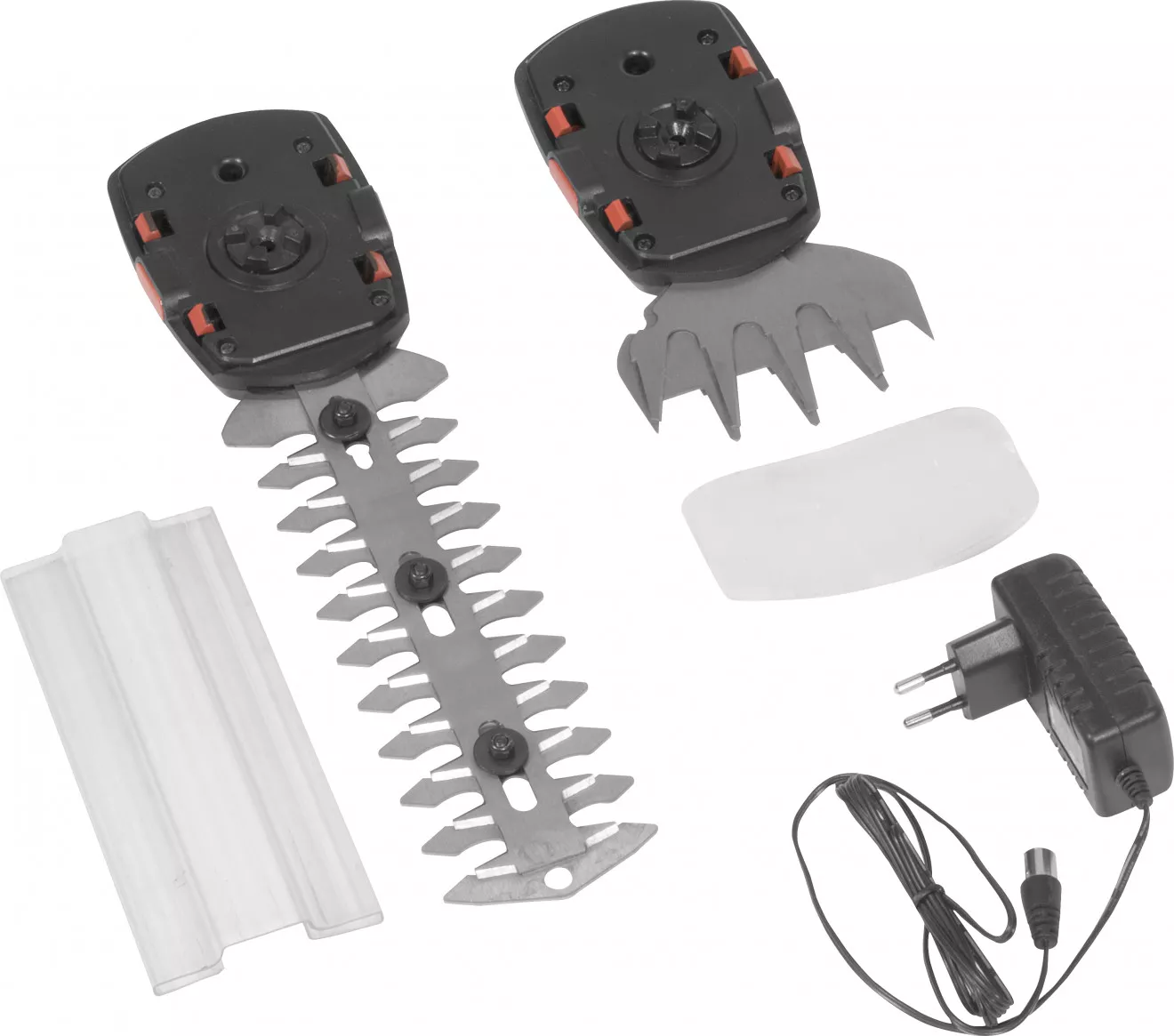 - Střihací nože na trávu (šířka záběru: 90 mm), lišta s noži na keře (max