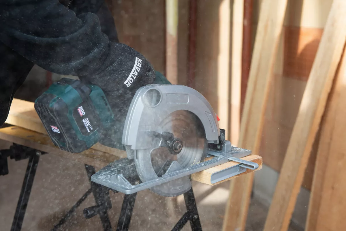 - Odolná kotoučová pila Pro Power je vybavena pevnou hliníkovou základnou.