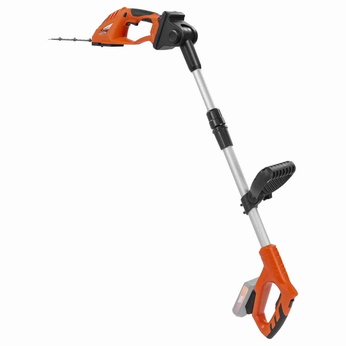 - Nářadí můžete plně přizpůsobit své pracovní poloze, takže můžete sledovat tvar svého křoví nebo živého plotu, aniž byste se museli ohýbat do nepohodlných pozic.