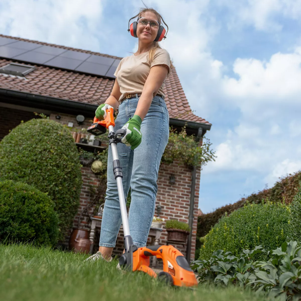 - Násada je roztažitelná až na 920 mm, což vám umožní udržovat okraje vašeho trávníku, aniž byste se museli neustále předklánět.