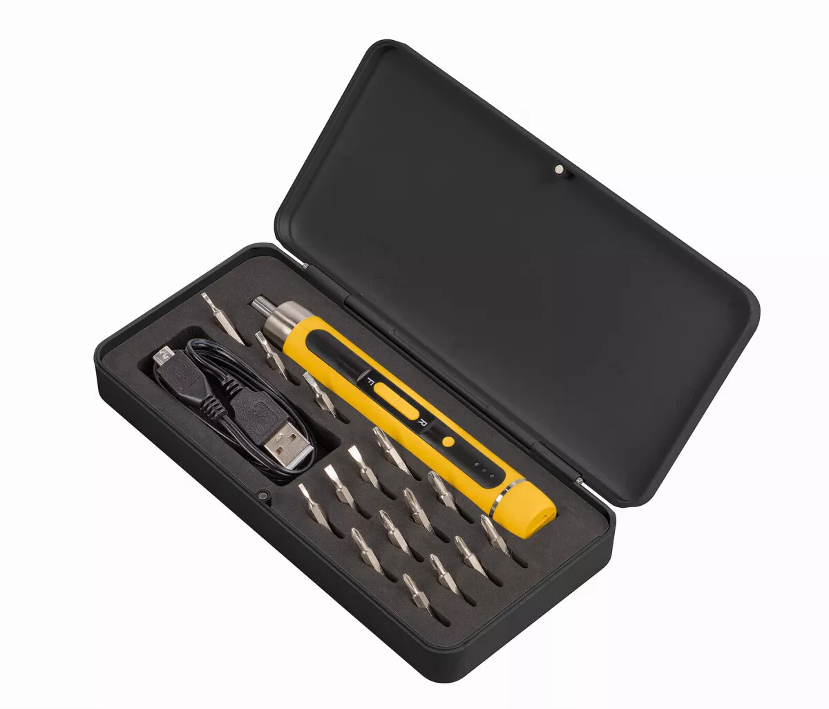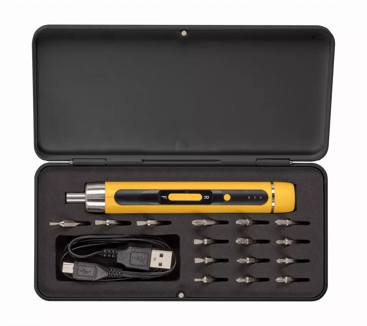 - Nejen, že se tento precizní šroubovák dodává v praktickém kufříku, ale také obsahuje 15 šroubovacích bitů, takže se můžete bez otálení pustit do práce.