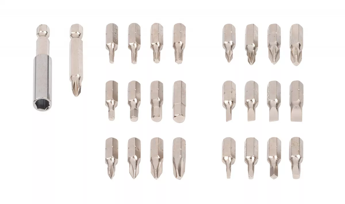 - 24 × 25 mm bity (T10/T15/T20/T25, SL3/SL4/SL5/SL6, PZ0/PZ1/PZ2/PZ3, PH0/PH1/PH2/PH3, H3/H4/H5/H6, S0/S1/S2/S3)