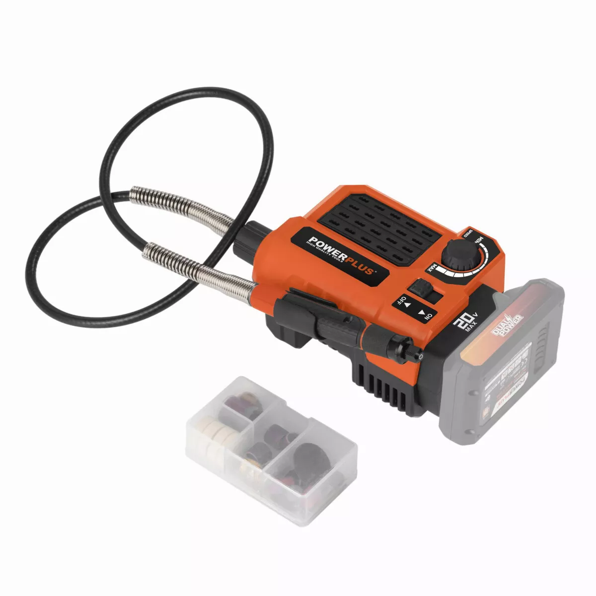 - Tato akumulátorová 20 V přímá bruska POWDP75300 od PowerPlus je extrémně univerzální a se 40 doplňky si poradí i s širokou škálou kutilských projektů.