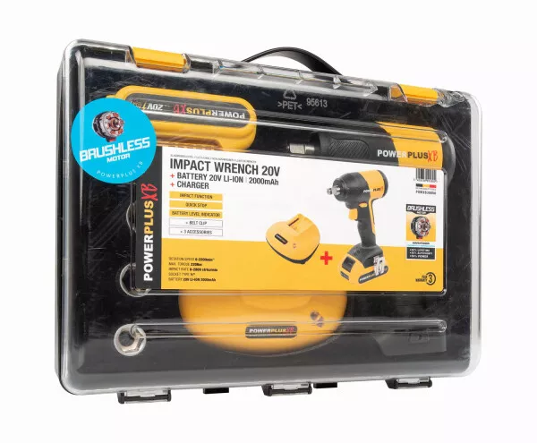 - Tento akumulátorový rázový utahovák POWXB30050 z řady Powerplus XB má max. kroutící moment 220 Nm.