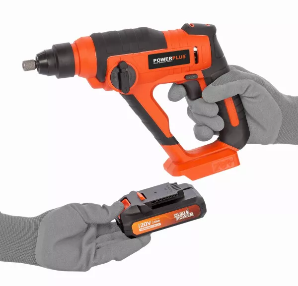 - Toto AKU příklepové vrtací kladivo POWERPLUS POWDP15600 o napětí 20 V má tři funkce použití.