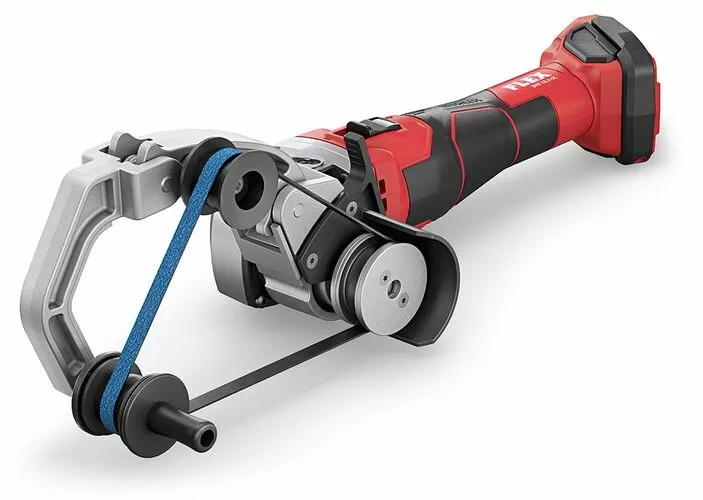 - Jedinečný nástavec s rychlospojkou na beznástrojovou výměnu čtyř systémových nástavců pro satinování a pásové broušení trubek, na broušení s pásovým pilníkem nebo bruskou na koutové svary