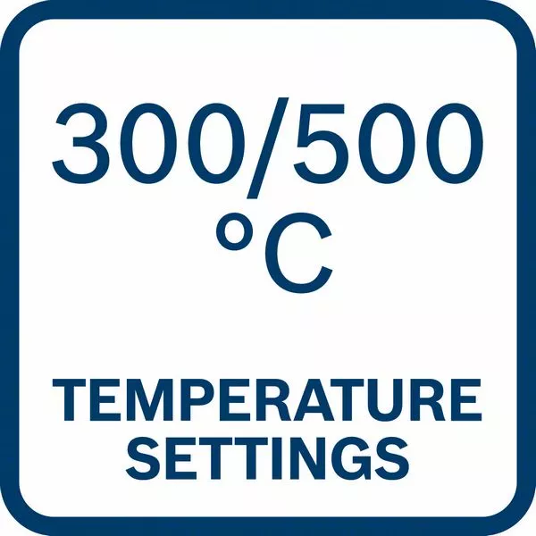 - Horkovzdušná pistole se dvěma úrovněmi teploty 300 °C a 500 °C a světlem LED zaručuje vždy snadné ovládání.