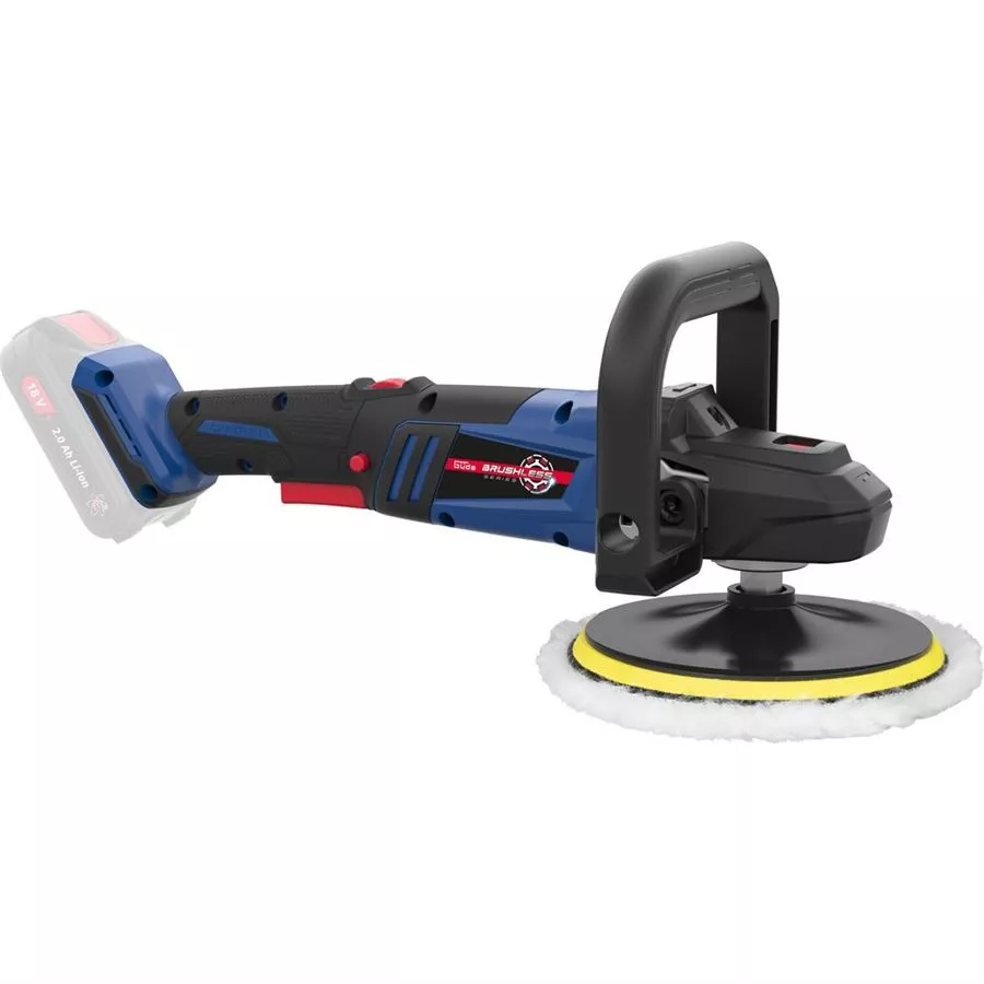- Akumulátorová leštička ze série akumulátorového nářadí 18V E 3 . Bezkartáčový motor pro větší výkon a delší životnost. Praktická a výkonná s plynule nastavitelnou rychlostí. Velká přídavná rukojeť, uzamykatelý vypínač, aretace vřetene. Úzký design s pogumovanou rukojetí pro bezpečnou práci. Robustní, kovová převodovka. Včetně přídavné rukojeti, leštícího kotouče, 2 ks houby. Dodává se bez akumulátoru a nabíječky.