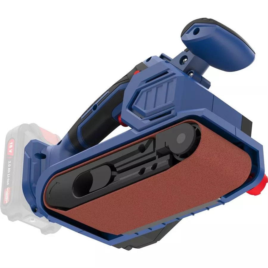 - Akumulátorová pásová bruska ze série akumulátorového nářadí 18V E3. Plynulá, variabilní předvolba rychlosti brusného pásu, ergonomická rukojeť s měkkým povrchem. Broušení hran, vodící rukojeť pro pohodlnou práci. Systém rychlé výměny brusného pásu. Jednoduché nastavení chodu pásu nastavením otočného kolečka. Výkonné, integrované odsávání prachu. Dodává se bez akumulátoru a nabíječky.