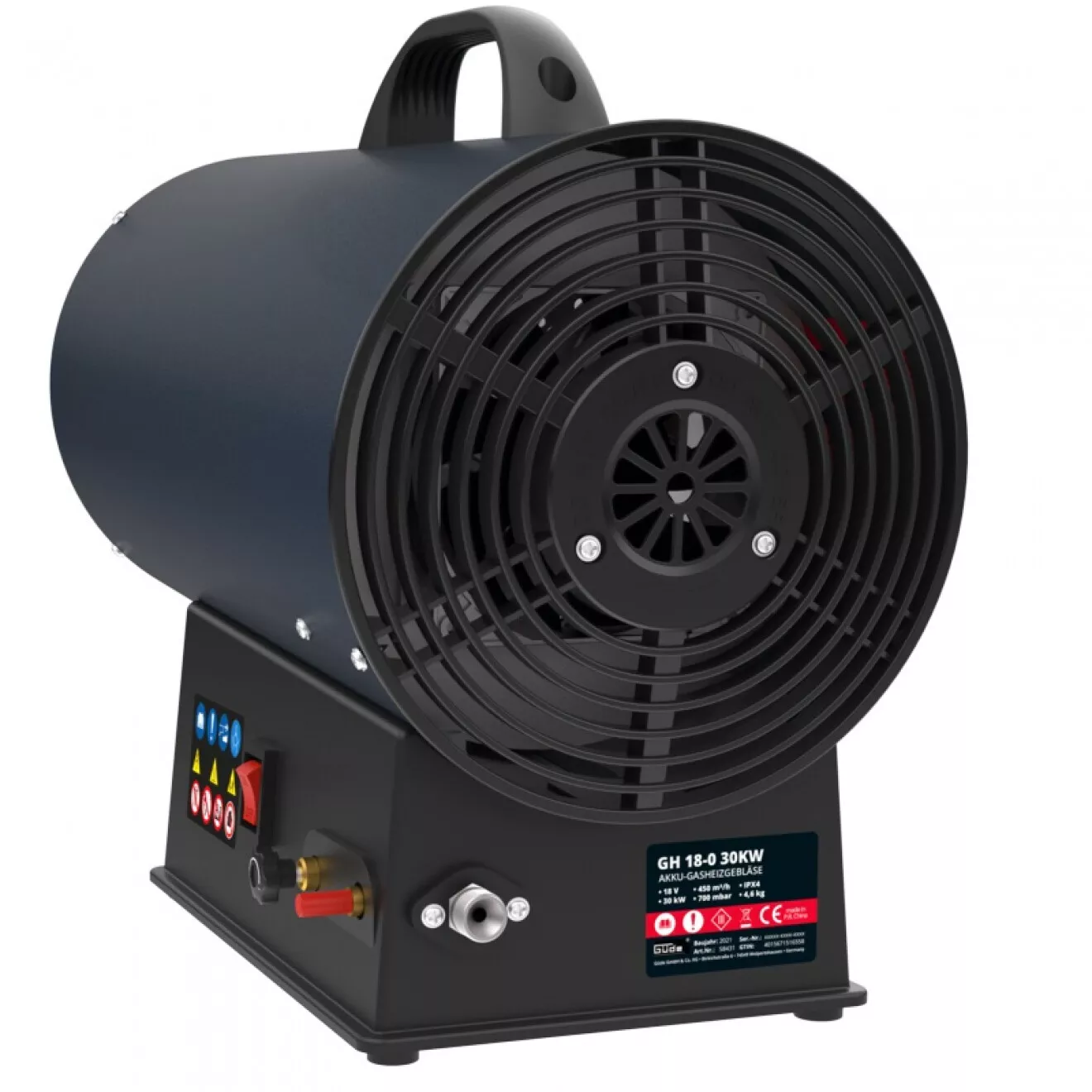 - Akumulátorová plynová turbína, určená k vyhřívání (vysoušení) odvětraných prostor v nebytových objektech (sklady, haly, garáže, staveniště ad.), popřípadě rozmrazování strojů, potrubí apod.Li-Ion akumulátor 18 V* (bez paměťového efektu, s minimálním samovolným vybíjením a dlouhou životností).Přesné nastavení vhodné intenzity vytápění pomocí plynového regulátoru (rozsah: 18 - 30 kW) • provoz na propan-butan (max