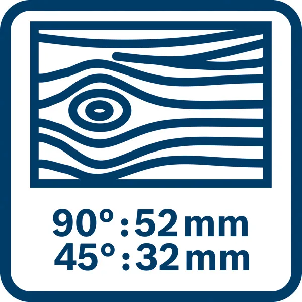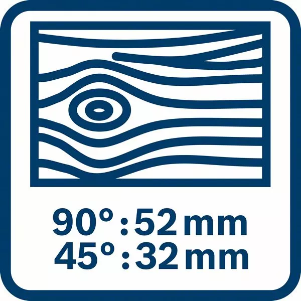 - Hloubka řezu bez vodicí lišty (45°): 32 mm