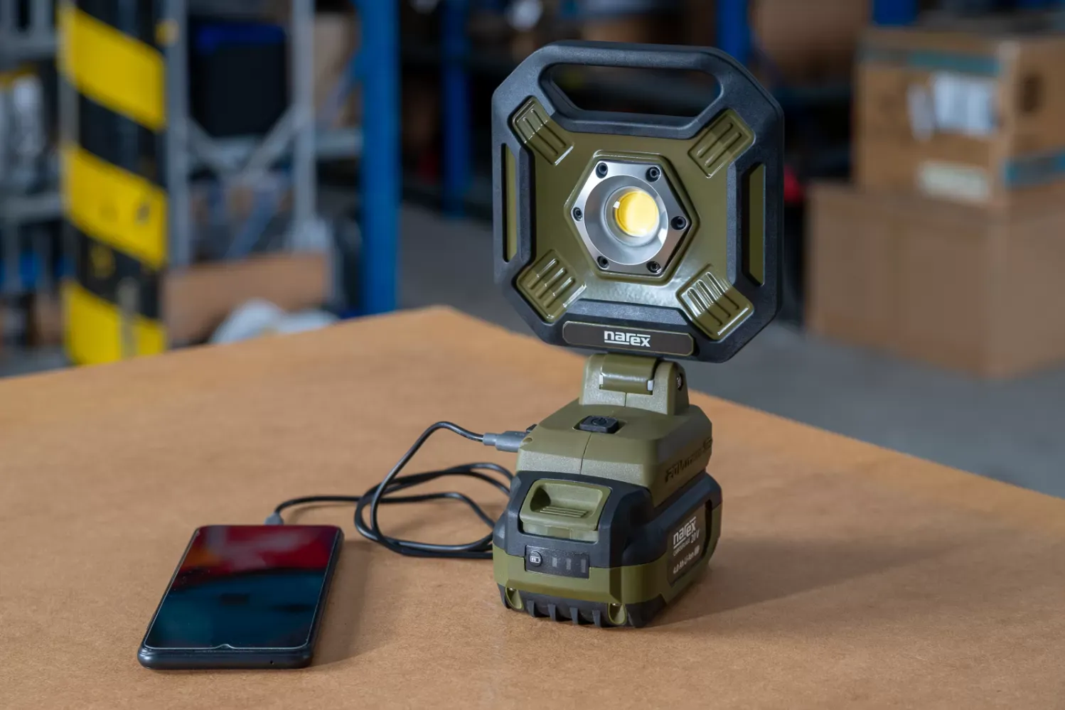 - Po připojení akumulátoru lampa díky USB konektoru slouží jako powerbanka