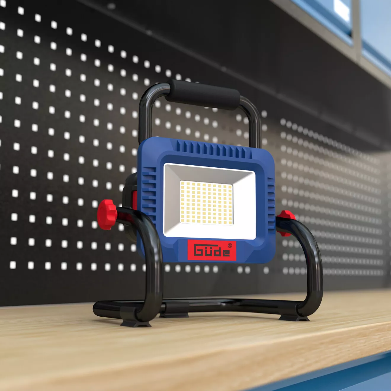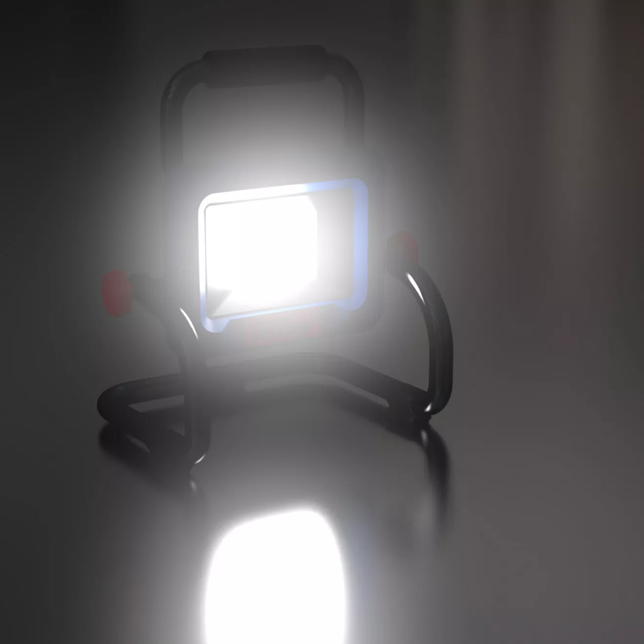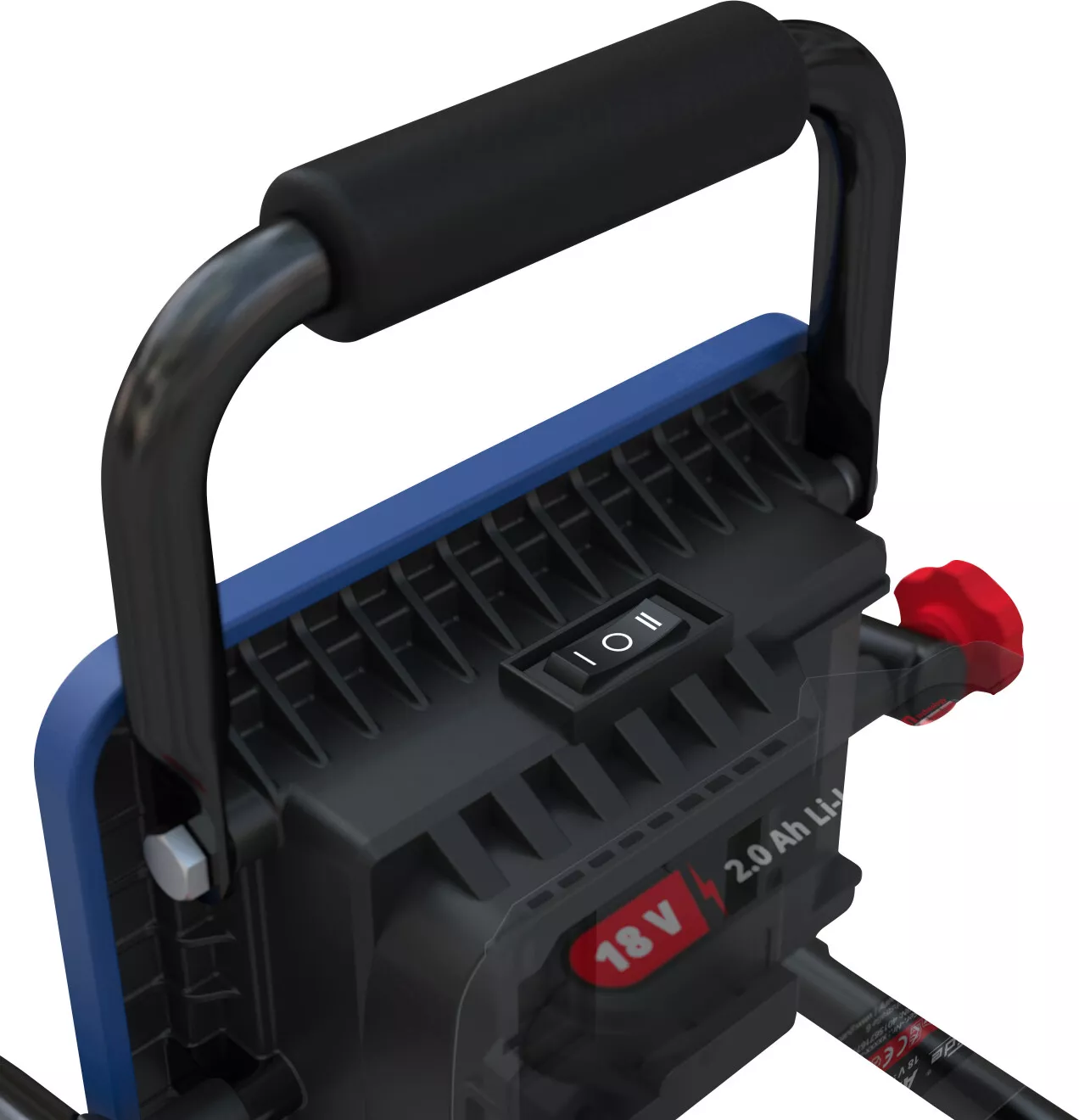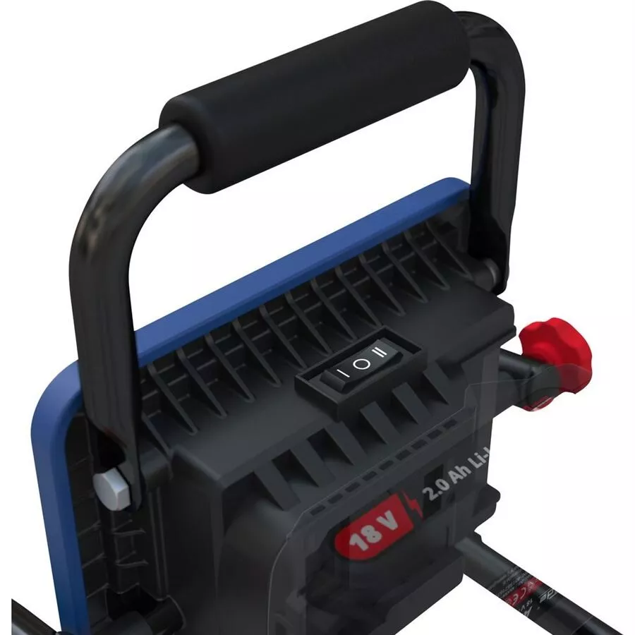 - Akumulátorový LED reflektor ze série akumulátorového nářadí 18V E3.Optimální osvětlení zajišťuje 100 výkonných SMD LED diod.2 světelné toky: 2000 lm nebo 4800 lm.Teplota chromatičnosti 6500 K (studená bílá).Individuálně nastavitelný úhel svícení v rozsahu 120°.Madlo k přenášení s měkkým úchytem.Pro mobilní použití kolem domu, v dílně nebo garáži.Bez akumulátoru a nabíječky.