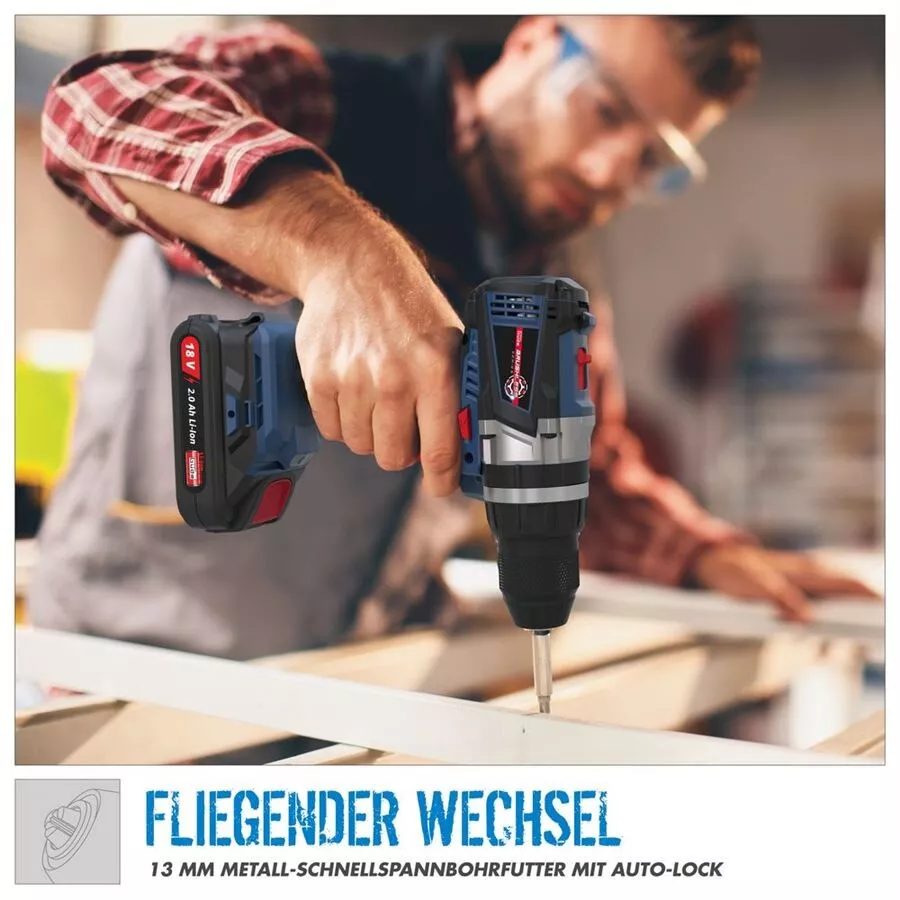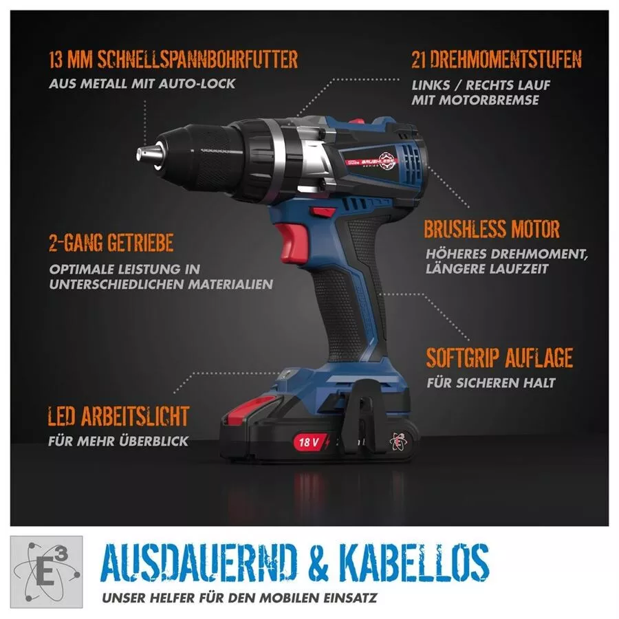 - Akumulátorový vrtací šroubovák s příklepem ze série akumulátorového nářadí 18V E 3 . Bezkartáčový motor pro lepší výkon a delší životnost. Silný a vysoce výkonný příklepový mechanismus. Dva převody pro optimální využití výkonu u různých materiálů.Automatická aretace vřetene, 13-milimetrové kovové rychloupínací sklíčidlo s funkcí Auto-Lock. Elektronika s regulací otáček a ochranou proti přetížení, levý/pravý chod s brzdou motoru, 21 stupňů točivého momentu. Pogumovaná rukojeť pro bezpečnou práci, integrované LED pracovní světlo. Příklepové vrtání, vrtání, šroubování. Dodáváno se bez akumulátoru a nabíječky.