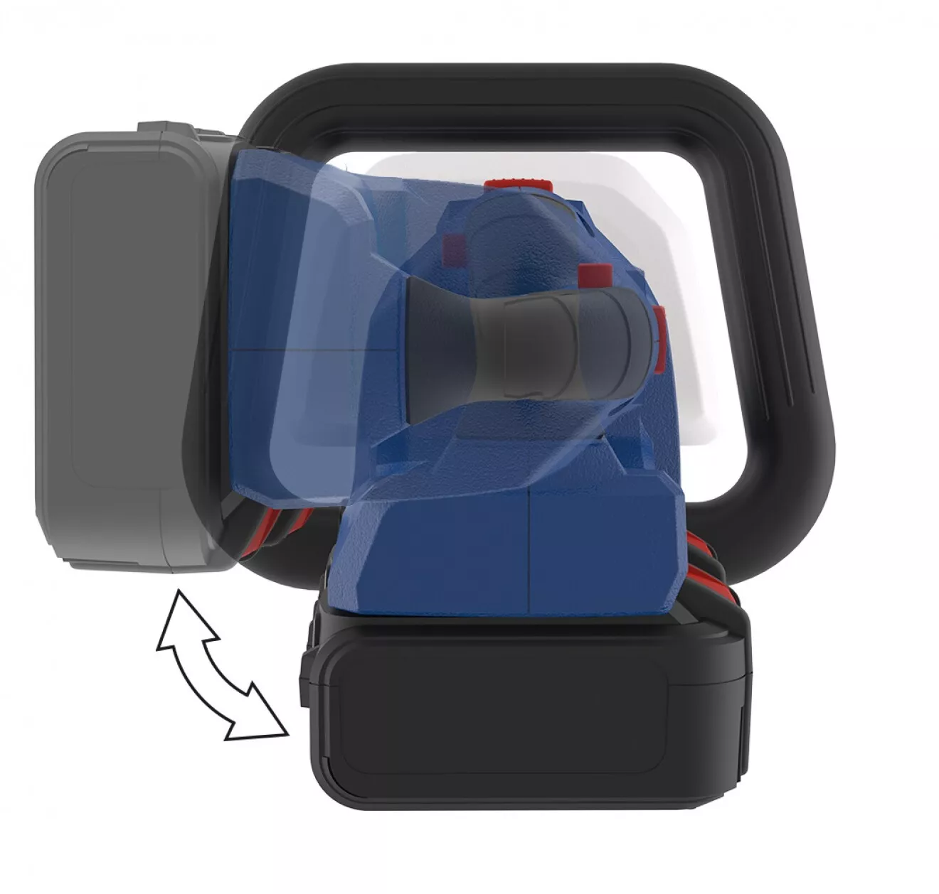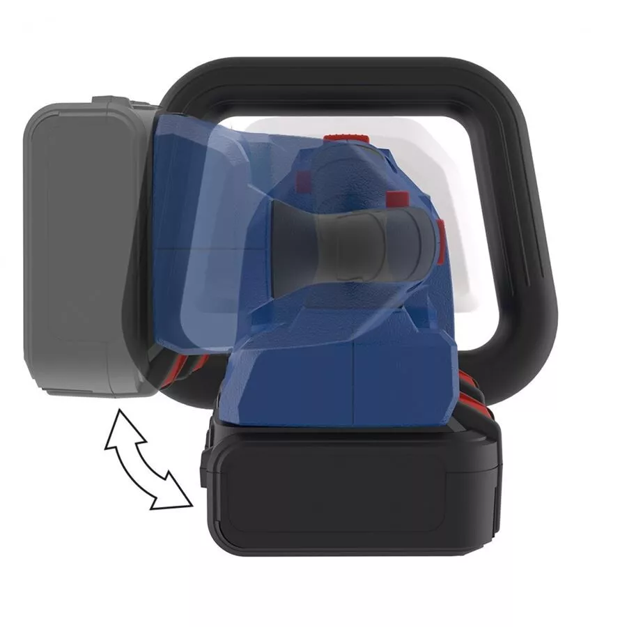- Nastavitelná zadní rukojeť (4polohové otáčení: ± 90°, pohodlné stříhání plotů shora nebo po stranách)