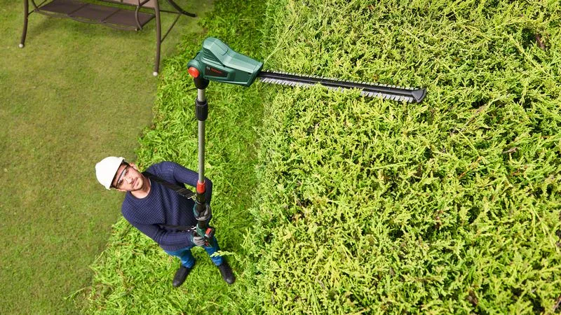 - Akumulátorové teleskopické nůžky na živé ploty UniversalHedgePole 18; Ergonomická konstrukce pro bezpracné stříhání vysokých živých plotů; Teleskopická tyč s nastavitelnou výškou a otočnou hlavou pro snadný dosah až 2,6 m; Antiblokovací systém Bosch pro výkonné nepřetržité řezání; Nízká hmotnost (3,6 kg) a ergonomická konstrukce s vyváženým rozložením hmotnosti pro větší pohodlí; Dokonalý výkon a dosah na zastřihování vysokých živých plotů bez námahy; Délka lišty 43 cm s roztečí zubů 16 mm; Kartonová krabice