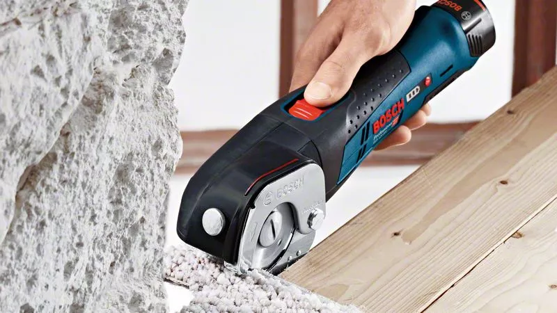 - Akumulátorové univerzální nůžky GUS 10.8V-LI, Nejrychlejší univerzální nůžky pro profesionální použití, Všestranně použitelné k řezání různých flexibilních a měkkých materiálů (do tloušťky až 11 mm), jako jsou např.