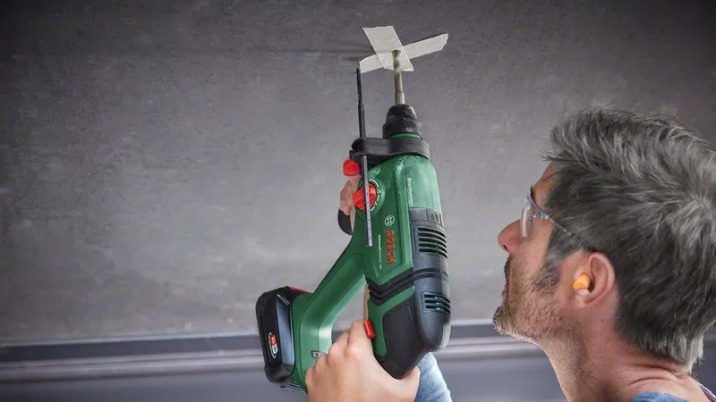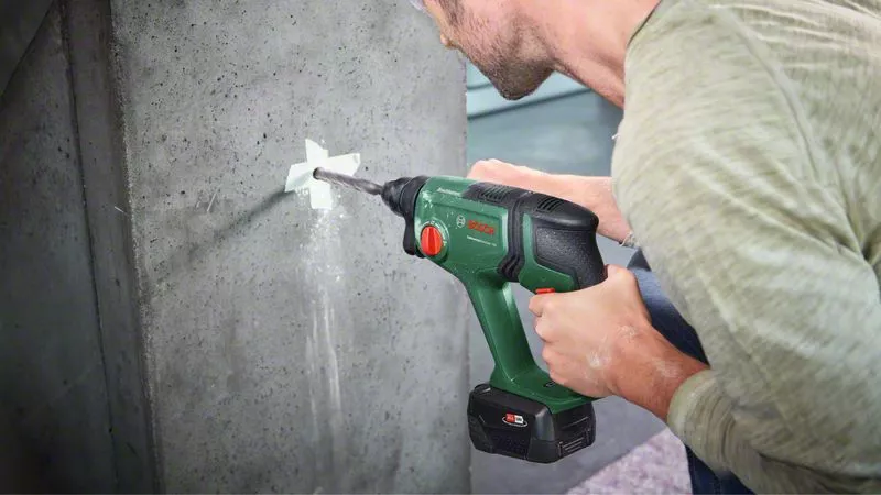 - Akumulátorové vrtací kladivo UniversalHammer 18V; Akumulátorové a víceúčelové: vrtání, příklepové vrtání, sekání a šroubování; Kompaktní a praktická konstrukce zajišťuje vysokou účinnost 4 v 1; Pneumatický příklepový mechanismus 2,0 J pro vrtání otvorů až 16 mm a sekání do betonu; Univerzální vrtací sklíčidlo SDS plus pro snadnou výměnu vrtáků a sekáčů bez nástrojů; Kontrola vibrací a otáček zajišťuje bezpečnější manipulaci a méně únavy; Kompatibilní s akumulátory Bosch 18V POWER FOR ALL; 2× akumulátor PBA 18V 2.5Ah; Nabíječka AL 1830 CV; Hloubkový doraz; Kufr