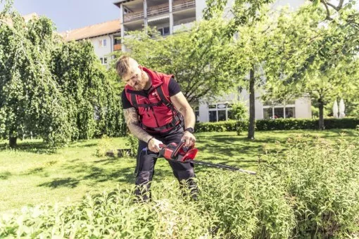 - Akumulátorové nůžky na živý plot HT 4245 je možné provozovat pouze s naším zádovým popruhem s kapsou na akumulátor (Číslo výrobku: 127442). Tím zůstává velký a těžký akumulátor pohodlně na těle a nezvyšuje hmotnost přístroje.