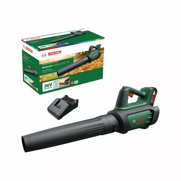 - Akumulátorový foukač na listí AdvancedLeafBlower 36V-750; Odstraňuje nepoddajné listí se silným, akumulátorovým výkonem; Bezuhlíkový motor zajišťuje vysoký výkon pro náročné ofukování; Pomocí nastavitelných otáček si vyberte optimální výkon, hlučnost a dobu chodu; Práce bez namáhání díky lehké a vyvážené konstrukci; Axiální ventilátor odstraňuje odolné nečistoty z tvrdých, nerovných nebo mokrých povrchů; Technologie Syneon pro optimální sílu či maximální výdrž podle potřeby; 36V POWER FOR ALL – akumulátor pro veškeré nářadí Bosch 36V Home & Garden; 1× akumulátor 36 V 2,0 Ah; Nabíječka AL 36V-20; Kartonová krabice