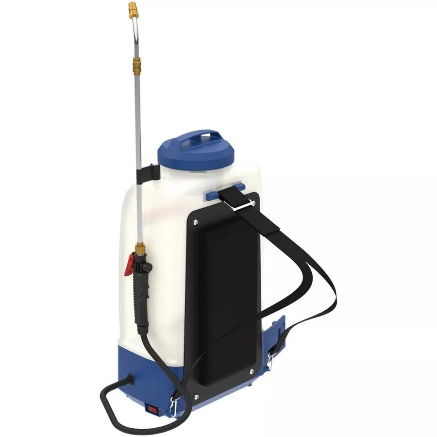 - Akumulátorový zádový postřikovač.Objem nádrže 10 l.Doba provozu na jedno nabití 160 min.