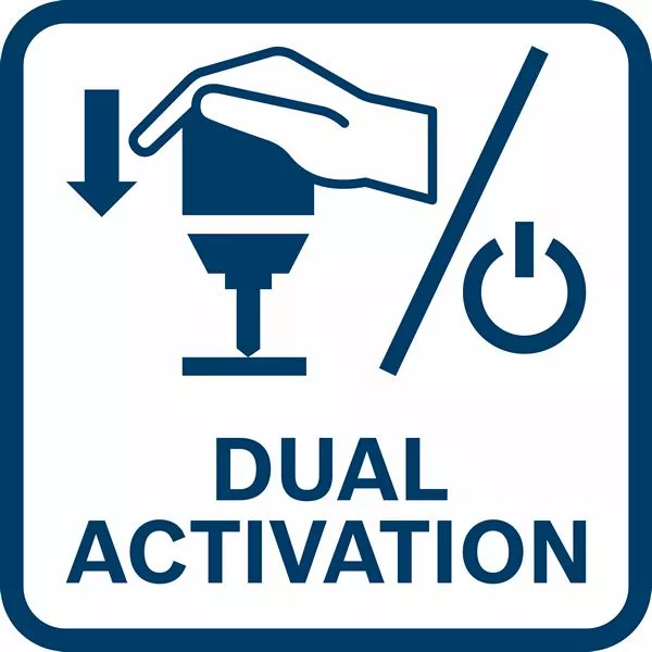 - Stačí zatlačit na nářadí nebo stisknout tlačítko – režim duální aktivace zajišťuje správný start v každé situaci.