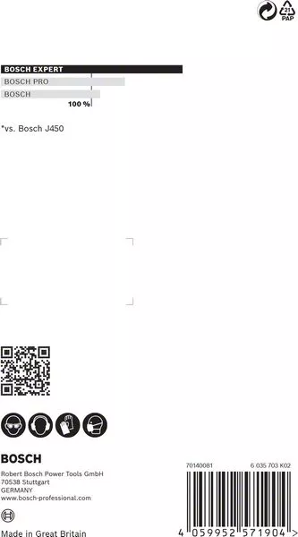 - Text s tvrzením o výkonnosti: Vydrží až 3× déle než brusný papír pro ruční broušení Bosch J475