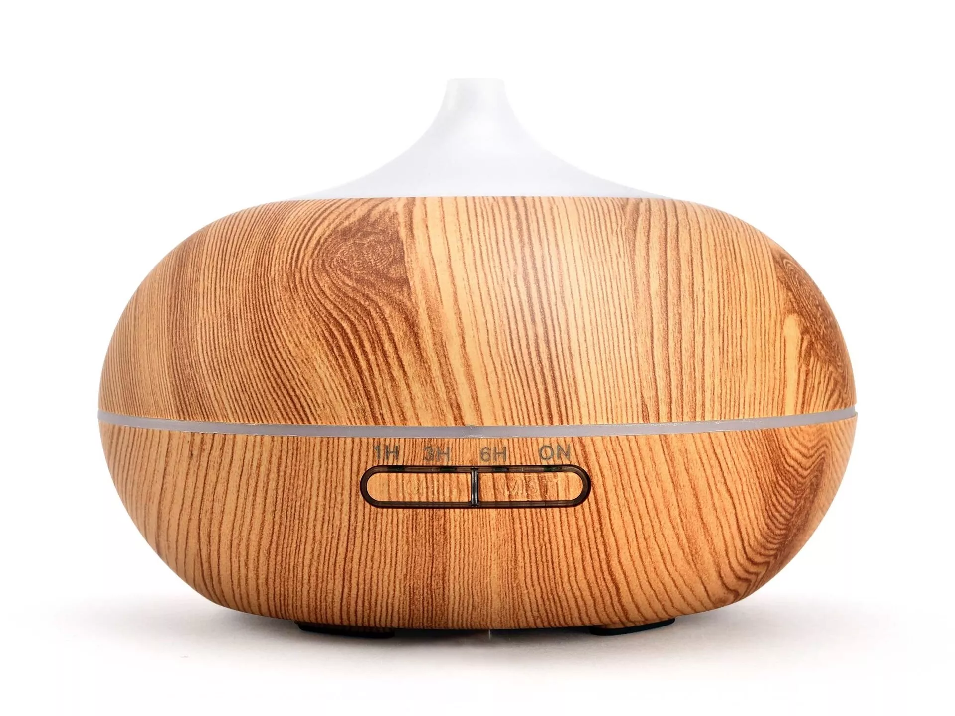 - Zvlhčovač vzduchu s difuzérem v designu přírodního dřeva (imitace dřeva). Aromatizuje a zvlhčuje vzduch kombinací účinků vodní mlhy a esenciálních olejů. Pomocí jemného ultrasonického vlnění rozkládá esenciální oleje na extrémně malé mikročástice, aniž by je zahříval. Oleje si tak zachovávají původní vůni i léčivé účinky. Aroma difuzér vám pomůže vytvořit z každého pokoje vonící oázu a navodit relaxační atmosféru.Bez přidání esenciálního oleje vám aroma difuzér poslouží jako zvlhčovač vzduchu. Přidáním konkrétního esenciálního oleje můžete sobě, nebo vašim blízkým pomoci s různými obtížemi. Postačí pár kapek kvalitního oleje a můžete ulevit rýmě, kašli, bolestem hlavy, nebo špatnému usínání. Správně zvolený olej vyčistí vzduch, nebo vám jednoduše zpříjemní pobyt v místnosti, ve které se právě nacházíte.Díky neutrálnímu designu světlého přírodního dřeva stylově doplní vybavení všech obytných prostor, dětských pokojů, jednacích místností, masážních salónů, wellness center apod. Vhodně zvolenými esenciálními oleji můžete podpořit relaxační atmosféru v ložnici, dezinfekci vzduchu či klidný spánek v dětském pokoji. Koncentraci v pokoji studenta anebo uvolněnou komunikaci, ať už doma nebo v pracovním prostředí.Používejte vždy kvalitní oleje. Použitím levných, umělých olejů sice vytvoříte voňavé prostředí, ale tělo a mysl si neodpočinou. Citlivým osobám může naopak uškodit. Například bolestí hlavy apod.Během provozu aroma difuzéru lze libovolně a jednoduše nastavit světelné efekty, které vytvoří ve vašem pokoji velmi příjemné prostředí a navodí relaxační atmosféru. Aroma difuzér je vhodný všude, kde je z bezpečnostních důvodů nemožné použít otevřený oheň (svíčky v aroma lampách). Kombinuje účinky vodní mlhy a esenciálních olejů.Obsluha aroma difuzéru je velmi jednoduchá. Do zásobníku nalejete vodu, nejlépe destilovanou. Nakapete několik kapek esenciálního oleje a přístroj zapnete stiskem tlačítka MIST (mlha). Podle počtu stisknutí tlačítka nastavíte dobu, po kterou bude přístroj v provozu. Aroma difuzér začne okamžitě vytvářet vodní mlhu a rozptylovat olej do vzduchu. Pomocí tlačítka LIGHT můžete nastavit režim barevného podsvícení. Prvním stisknutím nastavíte režim automatické změny barvy. Dalšími stisky můžete nastavit 8 barev v intenzivnější nebo světlejší verzi, které zůstanou nastaveny během provozu přístroje, dokud je nezměníte. Přidržením tlačítka LIGHT lze světelný efekt vypnout.Nemusíte kontrolovat množství vody v zásobníku. Po vyprázdnění se aroma difuzér sám vypne.